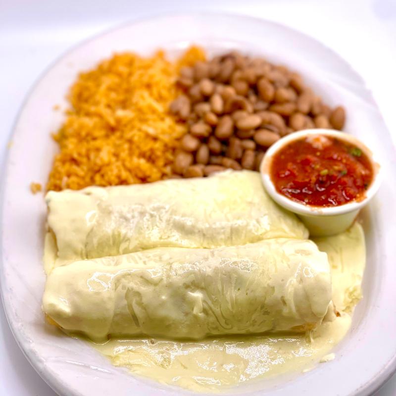 All combinations are served with beans and rice. One Item 18.50, Two Item 22.50, Three Item 26.50